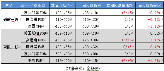 本周国际磷酸一铵、磷酸二铵市场周度收盘价格对比
