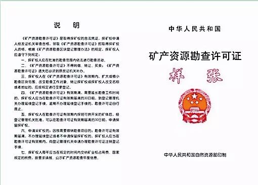 图为新版《矿产资源勘查许可证》和《采矿许可证》样式。