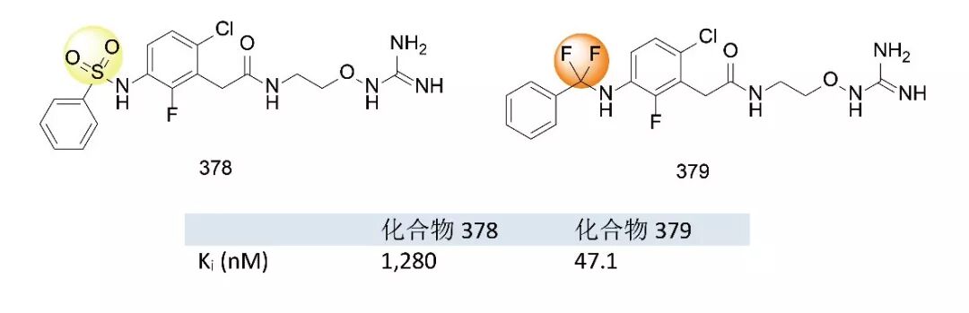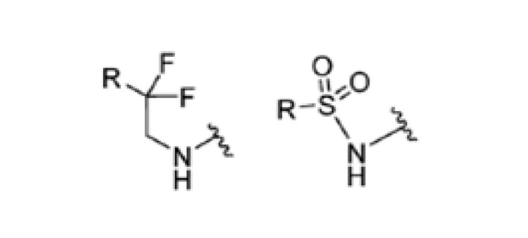虽然还没有大量的研究实验验证RCF2CH2NHR’能够作为磺酰胺(RSO2NHR’)生物电子等排体,但是强生公司的Lily Lee等,在2007年发表的对凝血酶抑制剂的开发实验中给我们一个实例,证明两者为潜在的化学性质相似结构。(Bioorg. Med. Chem. Lett. 2007,17, 6266−6269.)