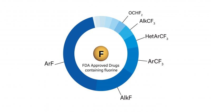 氟因其特有的化学性质,在新药开发中应用广泛。在FDA批准上市的含氟药物中,氟以ArF、AlkF、ArCF3等多种结构形式存在,用于改善药物的体内外活性。